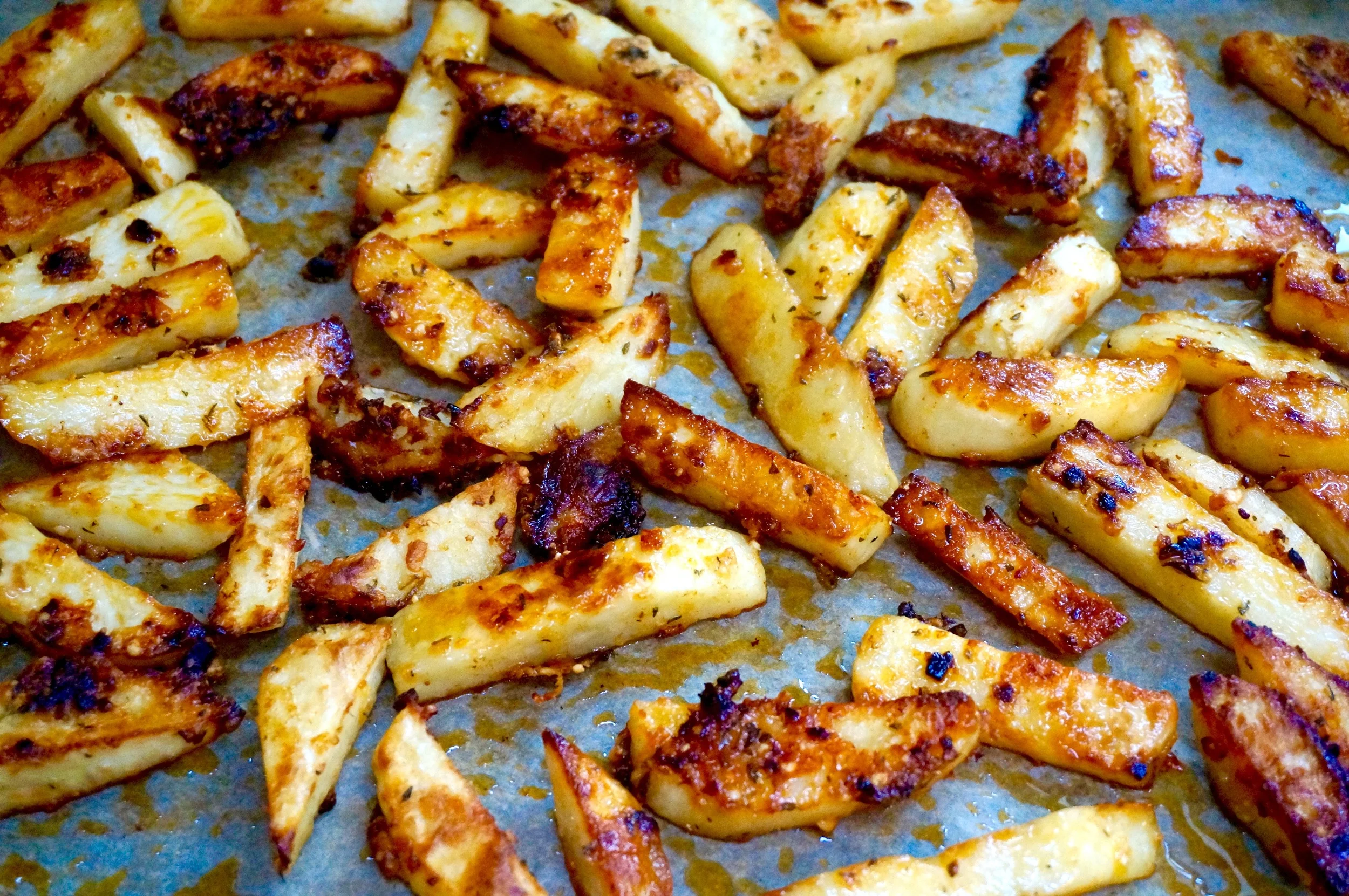 Oven-Roasted Cheesy-Crusted Potato Sticks