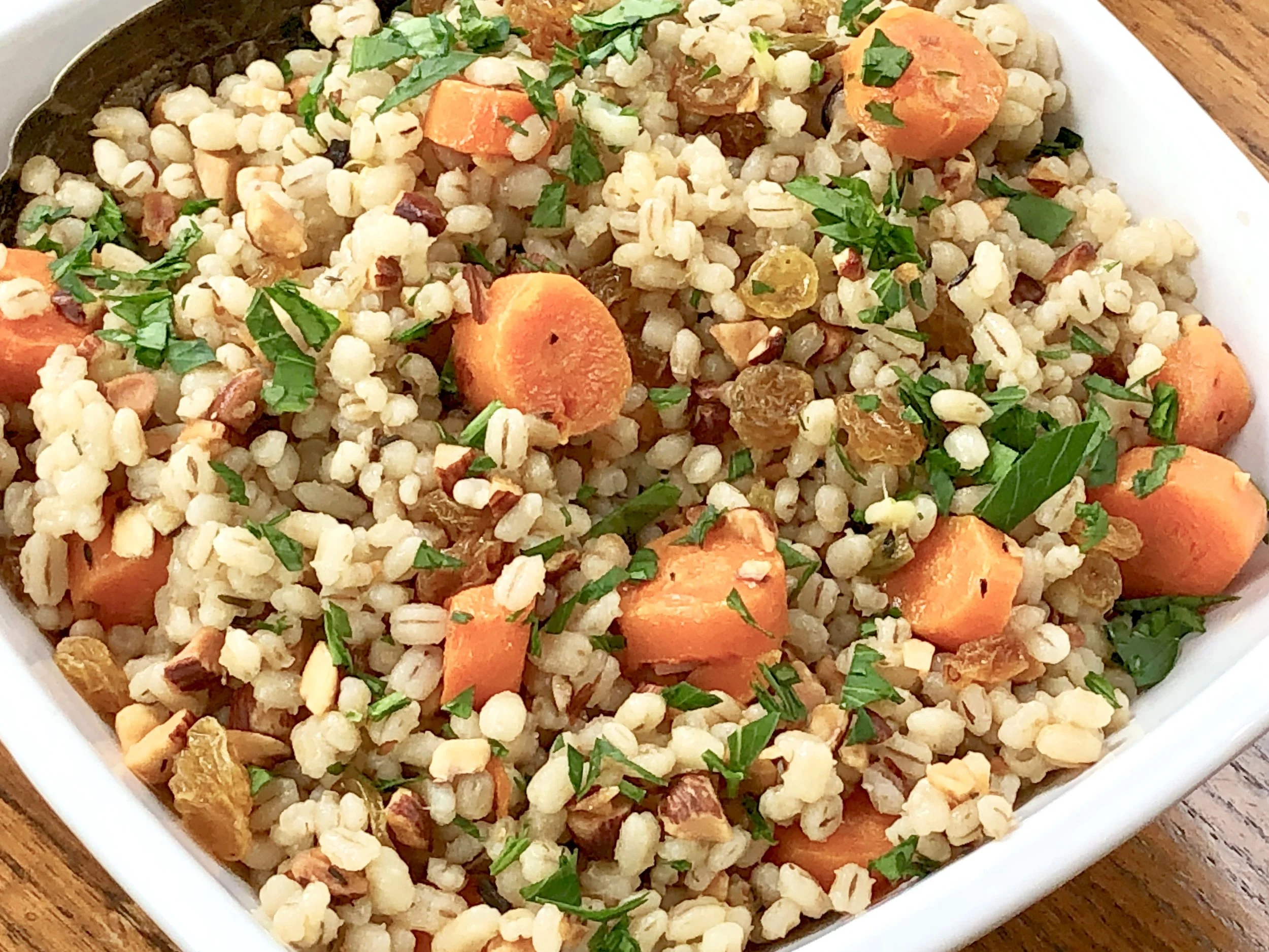 This barley casserole fits the bill. It’s a substantial side dish that works with meat, fish and poultry, with stews and hearty winter casseroles and for vegetarian meals too. It’s colorful and makes for an attractive addition to a winter dinner.