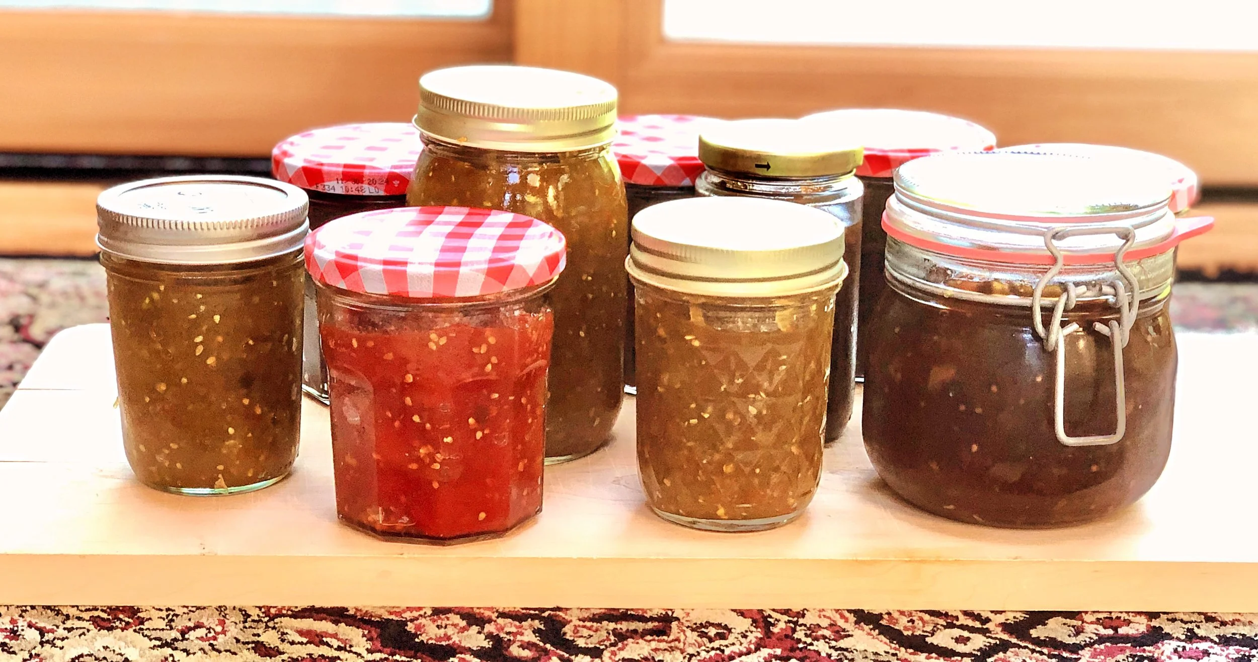 It’s that time of year again — there are still some ripe red tomatoes, lots of basil and a couple of eggplants in my garden, but mostly green tomatoes, (mostly still-green cherry tomatoes). They’ll ripen if I keep them on the vine but frankly, I have had so much success in the past using them for chutney, that that’s what I’ve been doing.