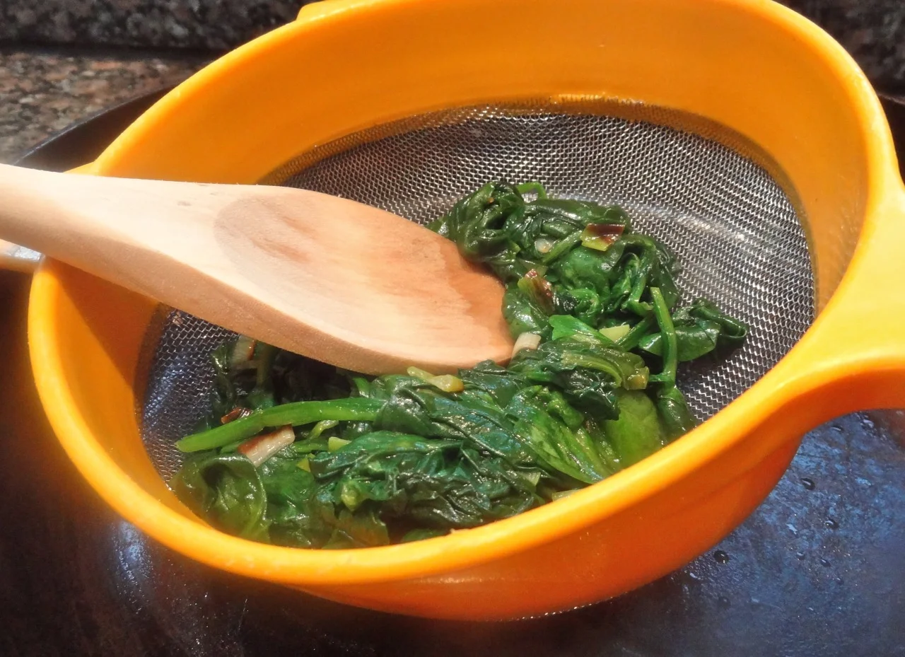 3) The trickiest part is making sure you squeeze out as much liquid from the cooked vegetables as you can — spinach contains quite a bit of water.