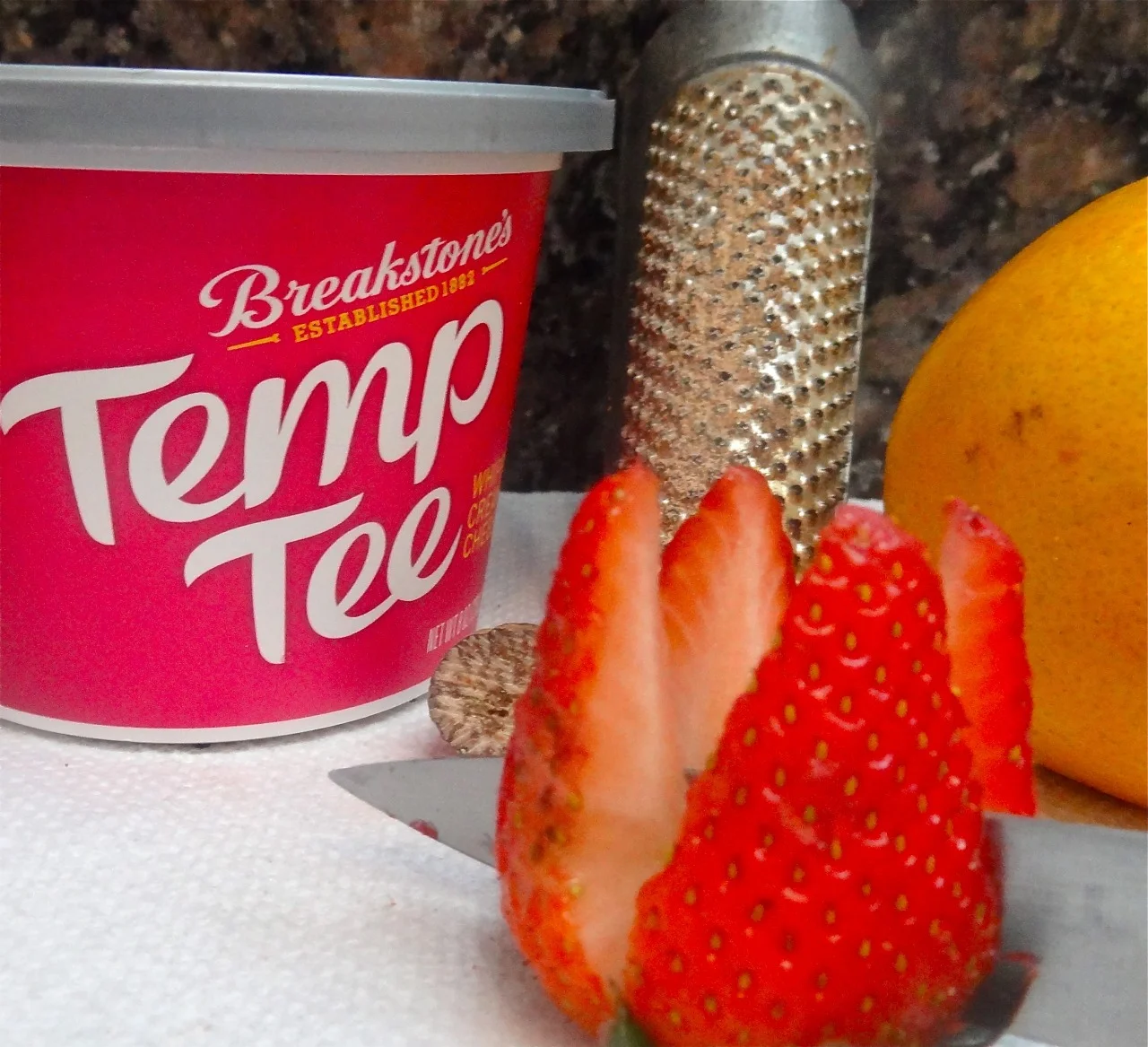 Temp Tee was also especially fine and fitting for those occasions when we wanted to whip it with cream or some other ingredient to make a dip or spread or dessert sauce. Like Inside Out Strawberries Romanoff.