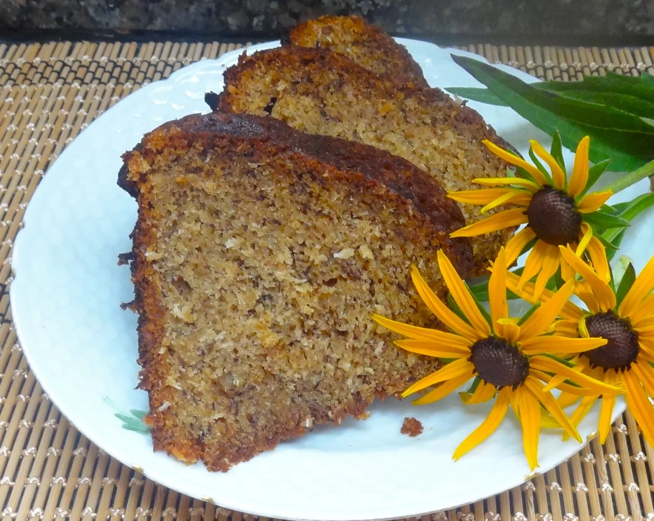 The version here includes coconut, coconut oil and quick oats, so it’s sweet, even though I’ve cut down on the sugar somewhat. And the oats help make it really tender.