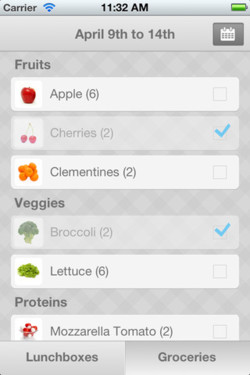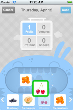 First the kid picks a really cute monster avatar (mine is bright orange with jagged teeth). The food choices are in categories including fruit, vegetable, protein and snack (parents can limit what’s available) so children learn about what a balanced lunch has. They plan their lunch choices for a week and that translates into a shopping list for Mom or Dad.