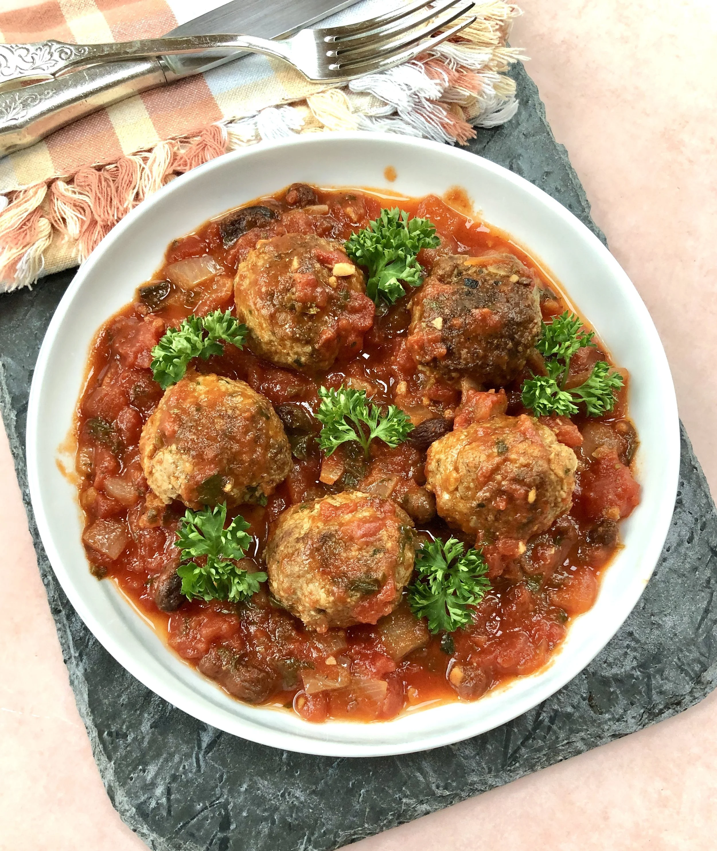 It’s all okay with me because I like meatballs. Always have. Except for the ones my father made once when my mother was sick and he decided to cook dinner. Unfortunately, cooking was not his long suit. He made the meatballs by rolling ground beef (with nothing else) into balls that were larger than your average cupcake. He put them in the broiler pan, opened a can of tomato paste over them and broiled them to death.