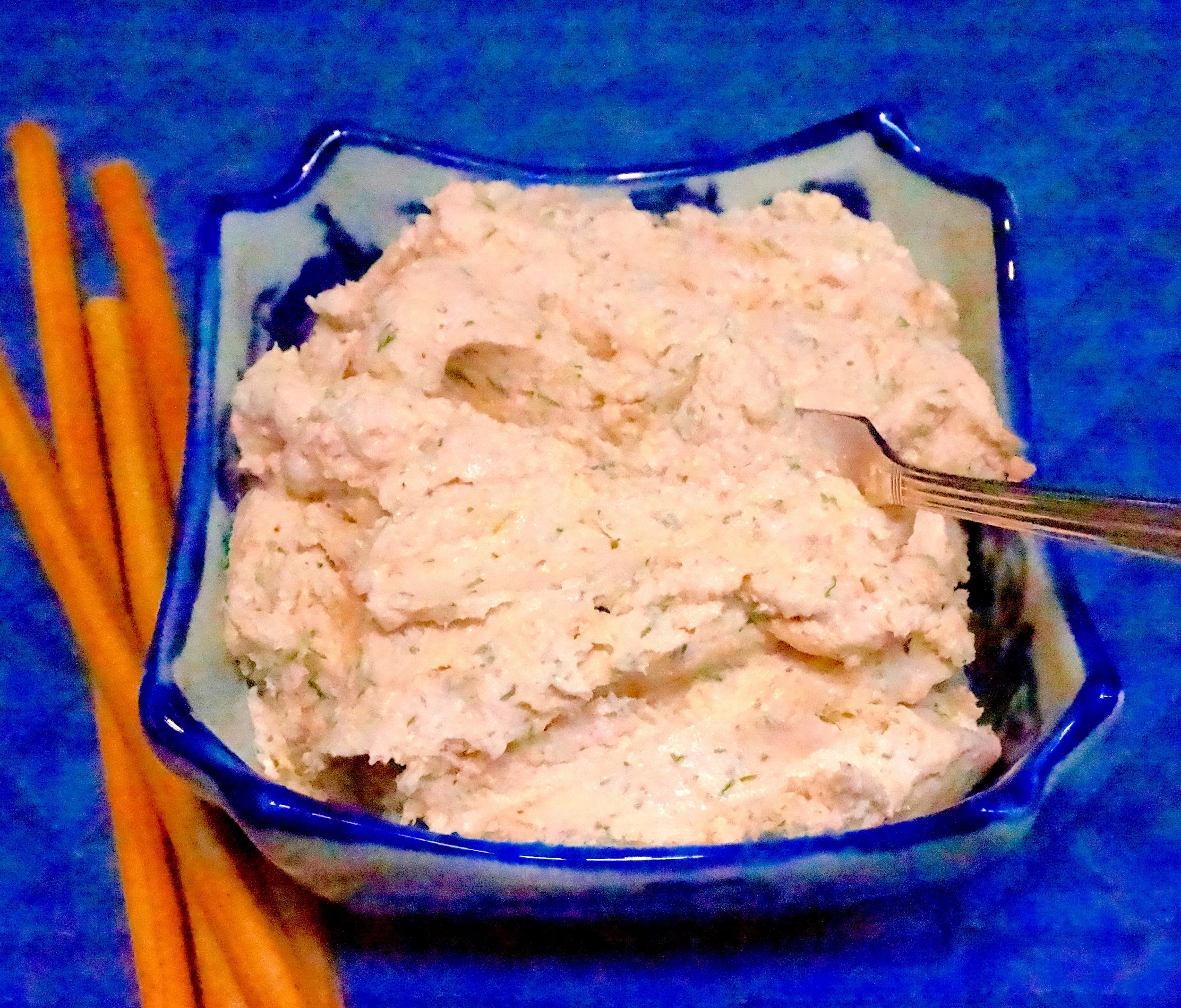 But I did point out to her that with the leftover salmon I made the other day, the dill, lemons, celery and cream cheese I always have on hand, I made this spread. Which is a perfectly easy-to-make, quick-as-a-wink to make hors d'oeuvre to be served with chips or crudites. And I served it over the weekend.