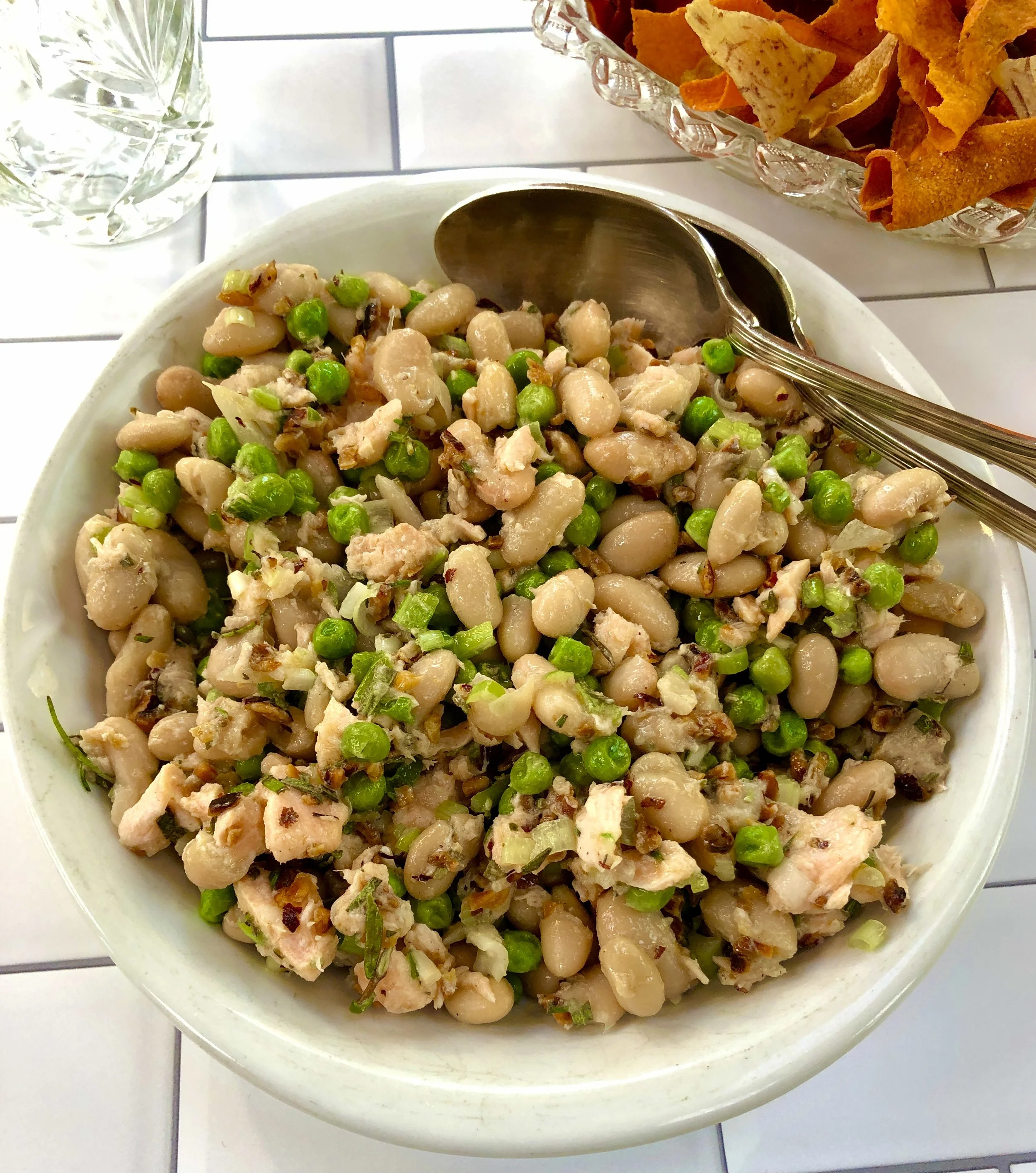 Another bonus: I’ve made this with leftover cooked turkey instead of fish and have changed the herbs (you can use rosemary, dill, thyme, savory or oregano). All good. I’ve also used red kidney beans and added mango. Another option: add some crumbled blue or feta cheese. Or change the vegetable from peas to cooked carrots.