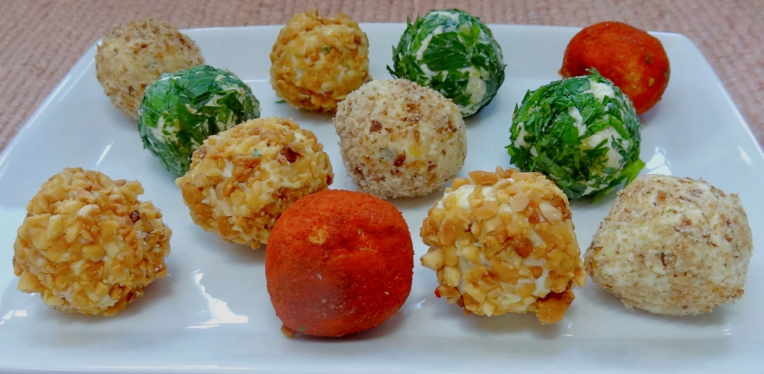 Maybe it’s nostalgia for some lost, long-ago time, but Cheeseballs are back in style. They’re a terrific hors d’oeuvre for New Year’s or any kind of cocktail party or with before-dinner drinks. They’re easy to make and extremely versatile — add herbs, spices, chopped fruits or vegetables; use different kinds of cheeses, roll them in different coatings for a better visual effect: bread crumbs, crushed nuts, chopped parsley, paprika, crushed peppercorns and what have you.