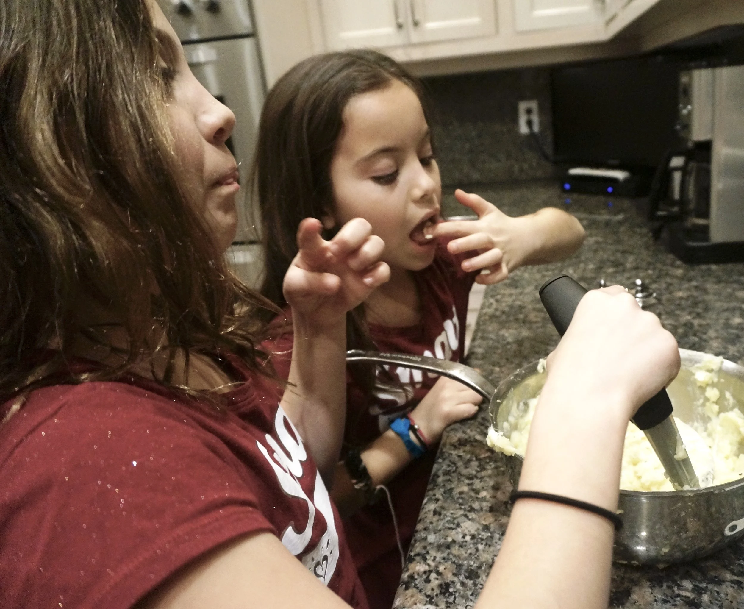 And as you can see from the photos, so are two of my grand daughters, who helped me make some mashed potatoes for dinner a while ago.