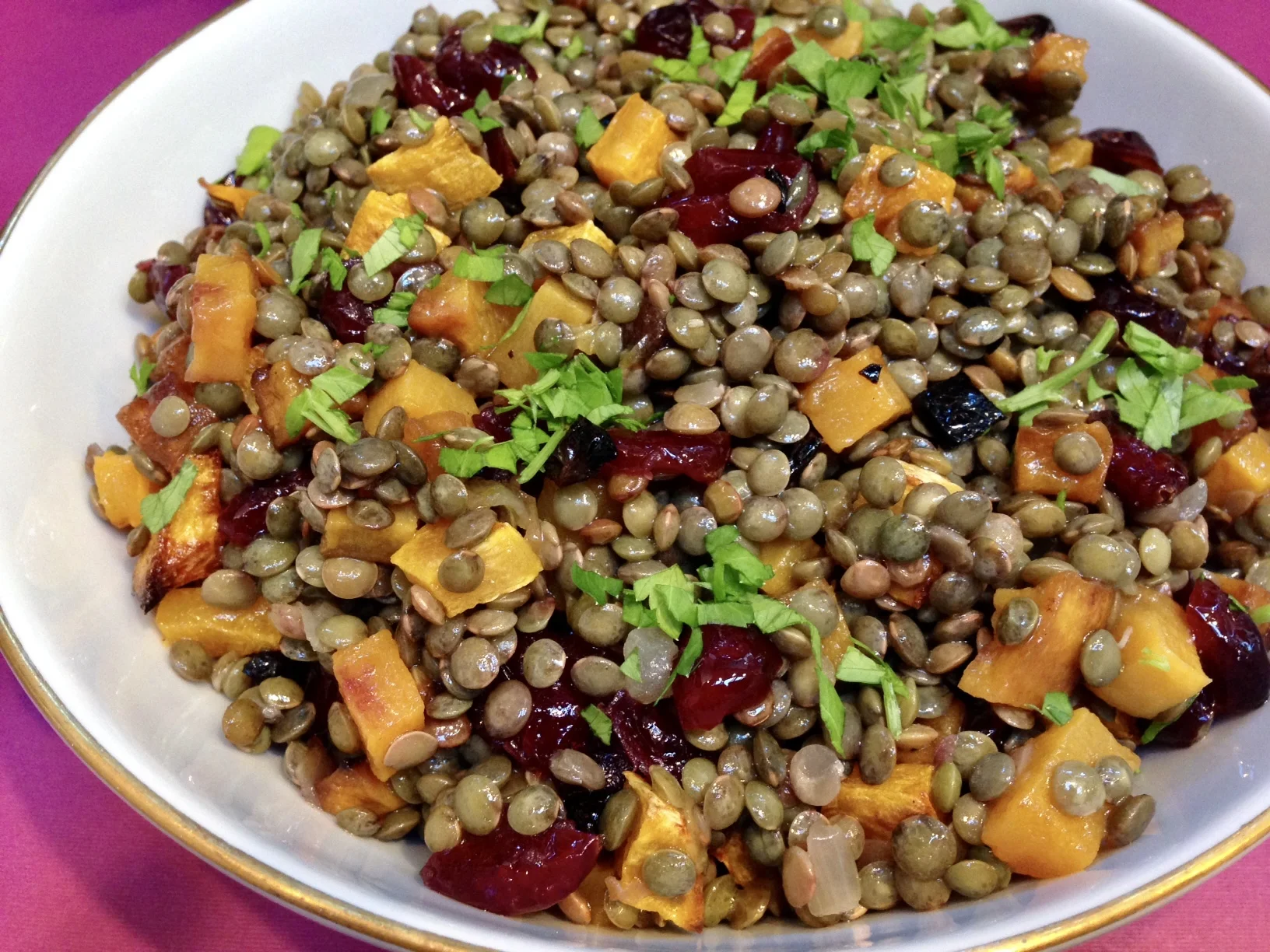 Lentils with Roasted Squash and Dried Cranberries