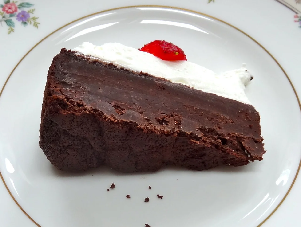 Is it still cake if it’s dense, ultra-rich and more like fudge? That’s what I wondered about this recipe, a cake I made this past weekend for my husband Ed’s birthday. This cake is dark-chocolatey. The kind of dark-chocolatey that experts say is healthy to eat (can you imagine that?). I’ve baked it before and eaten it still warm, when it is lighter, more tender and more like cake.