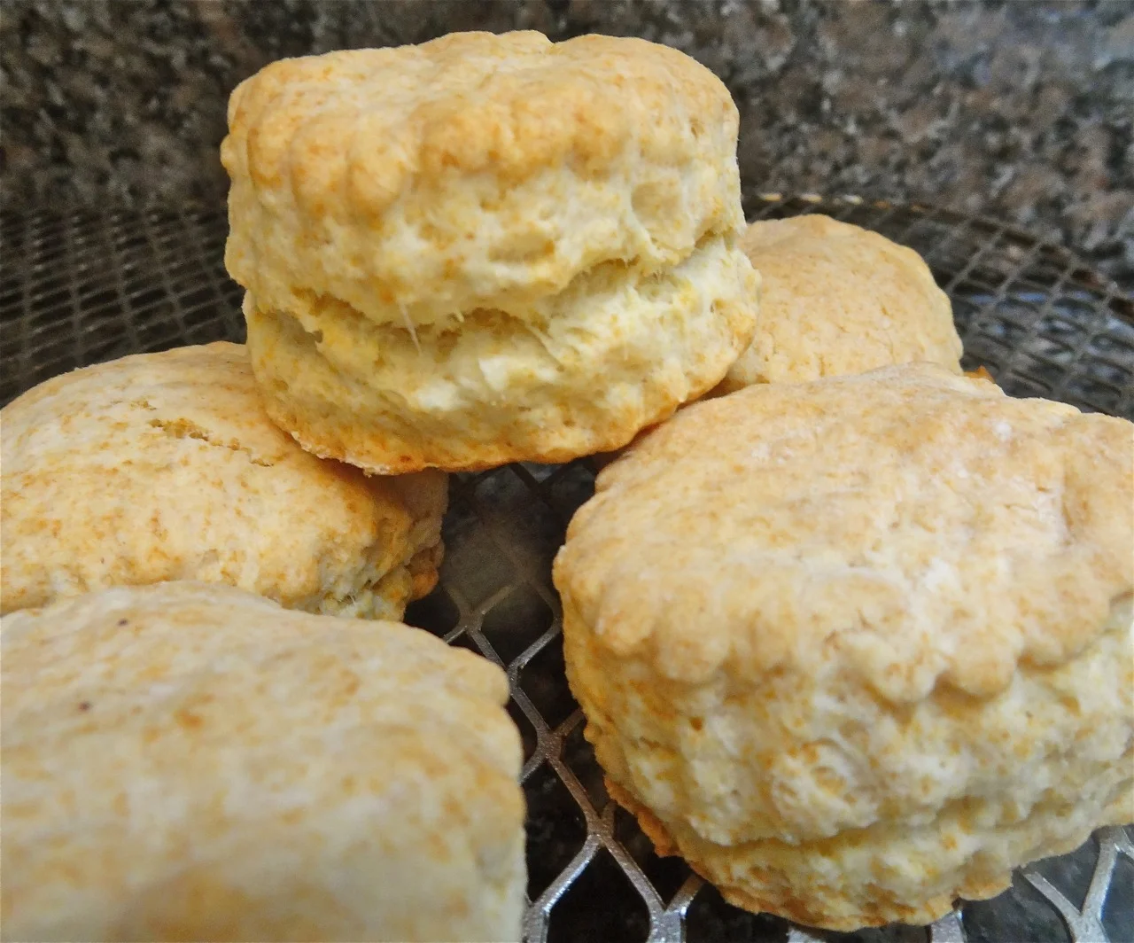 Preheat the oven to 400 degrees. Lightly grease a baking sheet or line it with parchment paper. Sift the flour, cake flour, baking powder, salt and baking soda into a bowl. Stir in the lemon zest, if used. Cut the butter into chunks and add it to the bowl. Work the butter into the flour mixture with your fingers or a pastry blender until the mixture resembles coarse crumbs (or use the pulse in a food processor). Pour in the buttermilk and mix until you can form a soft ball of dough. Try not to pound or overwork the dough (this makes the biscuits tough). Place the dough on a lightly floured surface and knead a couple of times. Roll or press the dough gently to 1/2-inch thickness. Cut out circles with a cookie cutter or the bottom of a drinking glass. Place the circles one inch apart (for darker biscuits) or close together (for fluffier biscuits) on the baking sheet. Bake for about 20 minutes or until they have risen and are lightly browned. Makes about 10 #biscuits #buttermilkbiscuits #buttermilkbiscuitsfromscratch #buttermilk #nationalbuttermilkbiscuitday