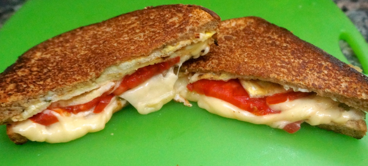 Grilled Cheese, Egg and Tomato Panini with Basil Mayo