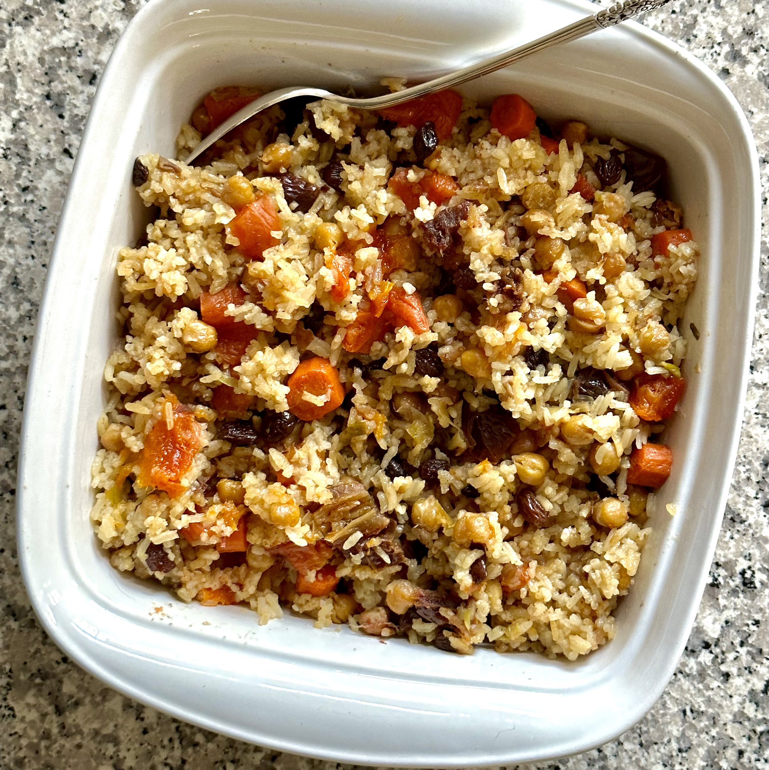 Chick Pea, Dried Fruit and vegetable Pilaf