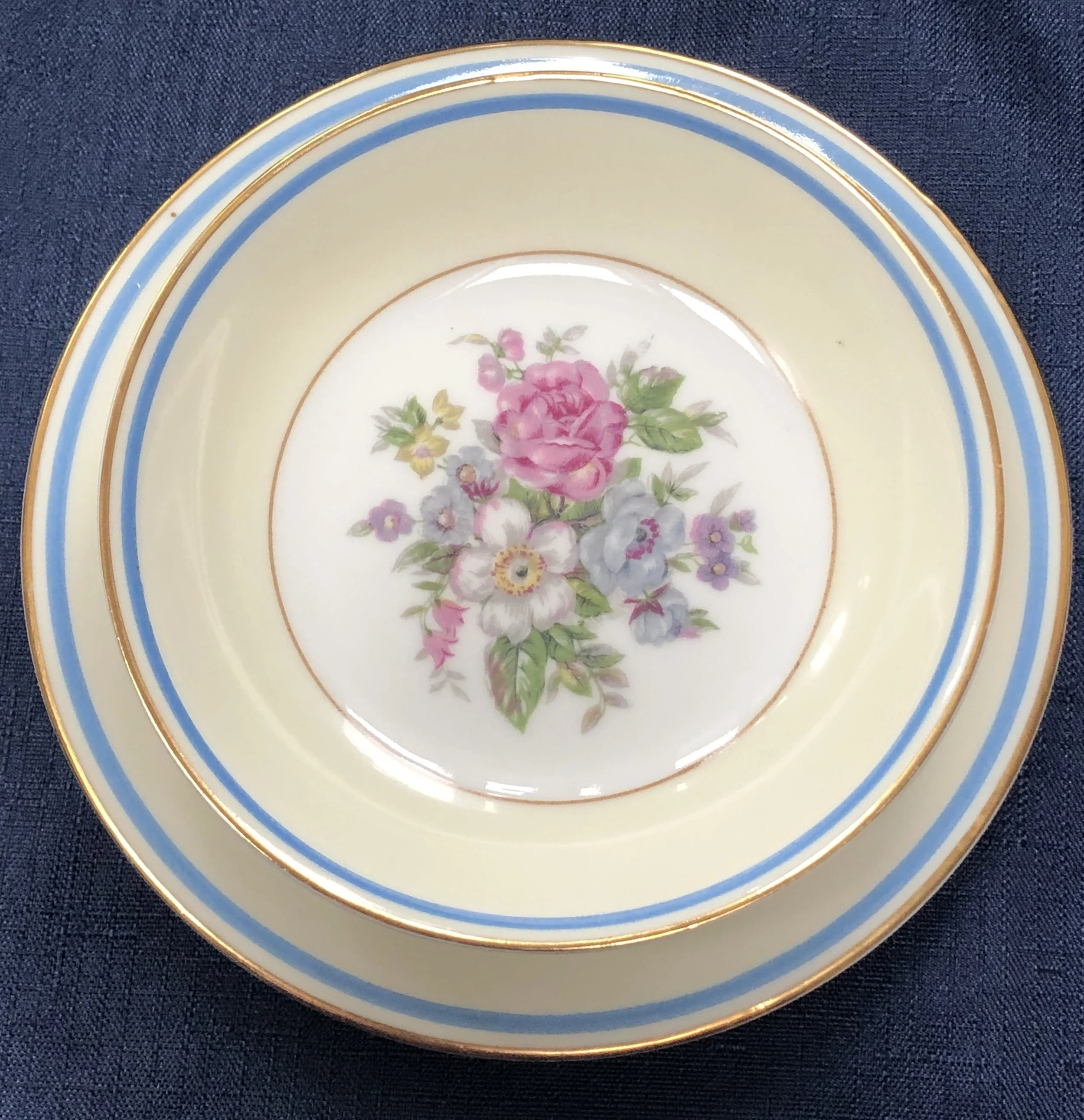But I did, and still do, love the dishes. I love the old fashioned floral centers, the slim blue and gold rims, the delicacy of Limoges.