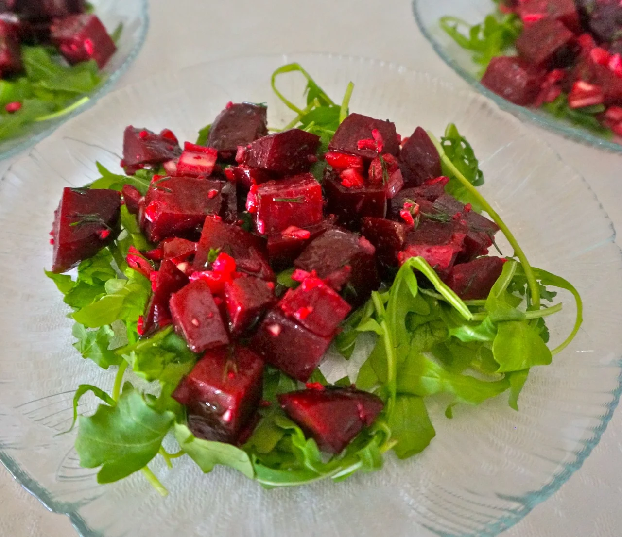 Beet Salad with Baby Arugula, Red Onions and Horseradish Vinaigrette
