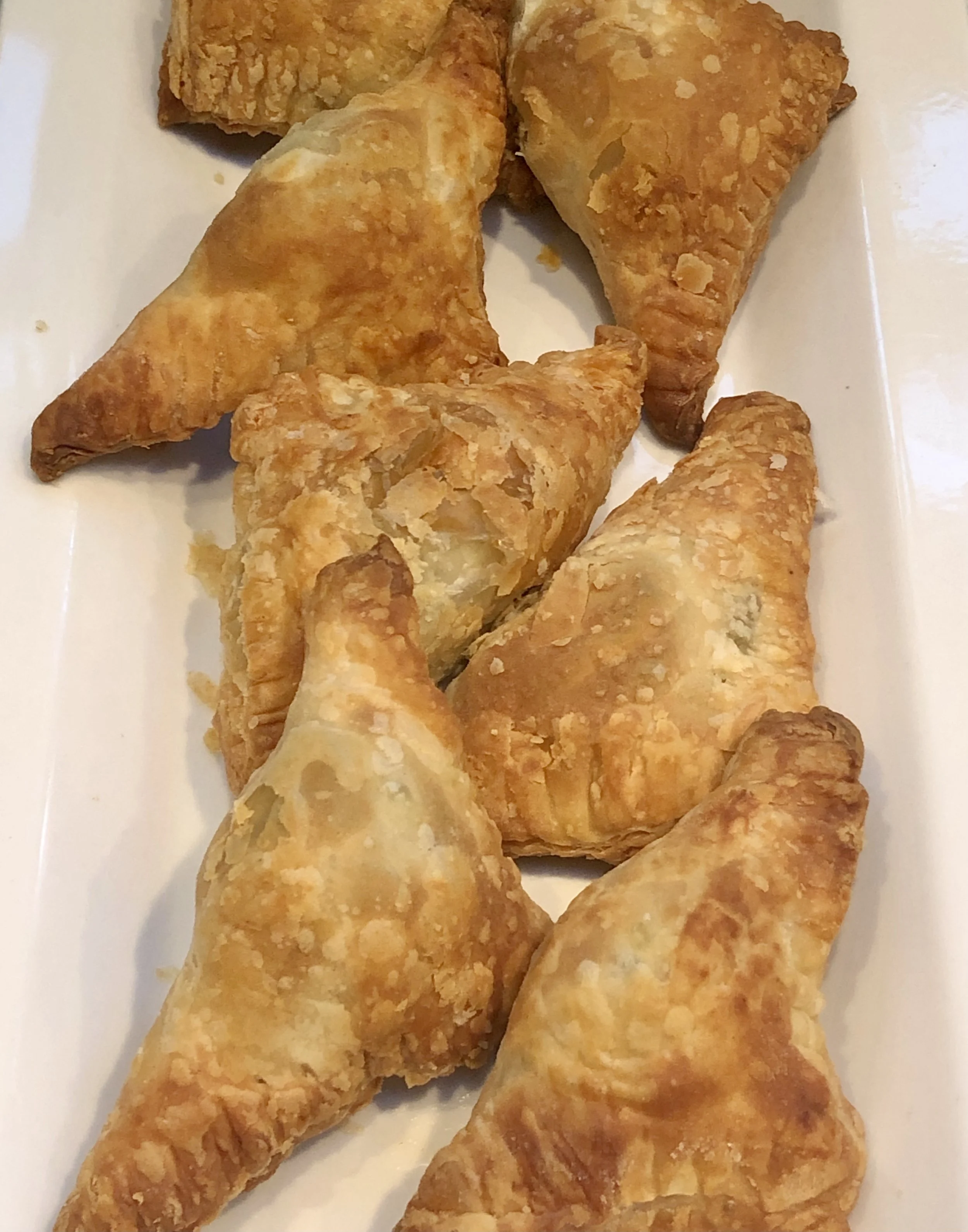 I used to make spanakopitas but it was really labor intensive. You have to butter several layers of phyllo dough, which is thin and fragile and breaks apart a lot.
