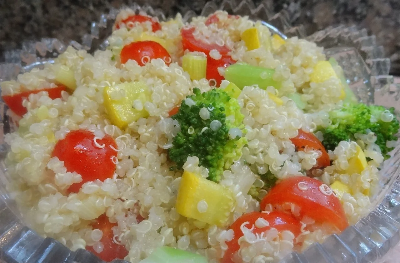 Quinoa Salad with Broccoli, Yellow Squash and Tomatoes