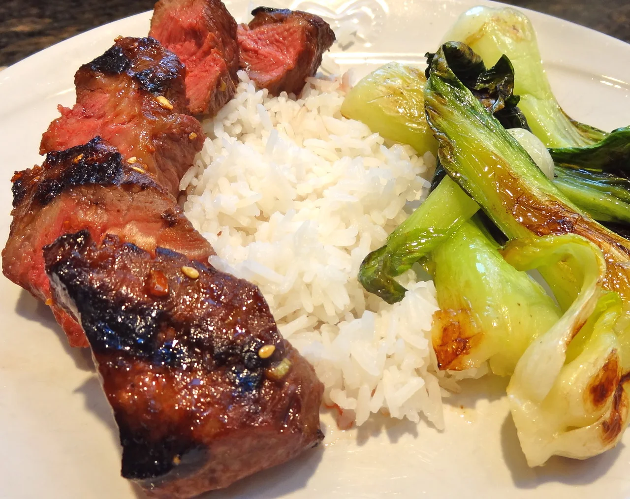 Yes, the meat is not as tender as other cuts, like rib. But much cheaper and, for meat lovers, gives quite a satisfying resilience. I served the Bulgogi with sauteed bok choy and steamed rice.