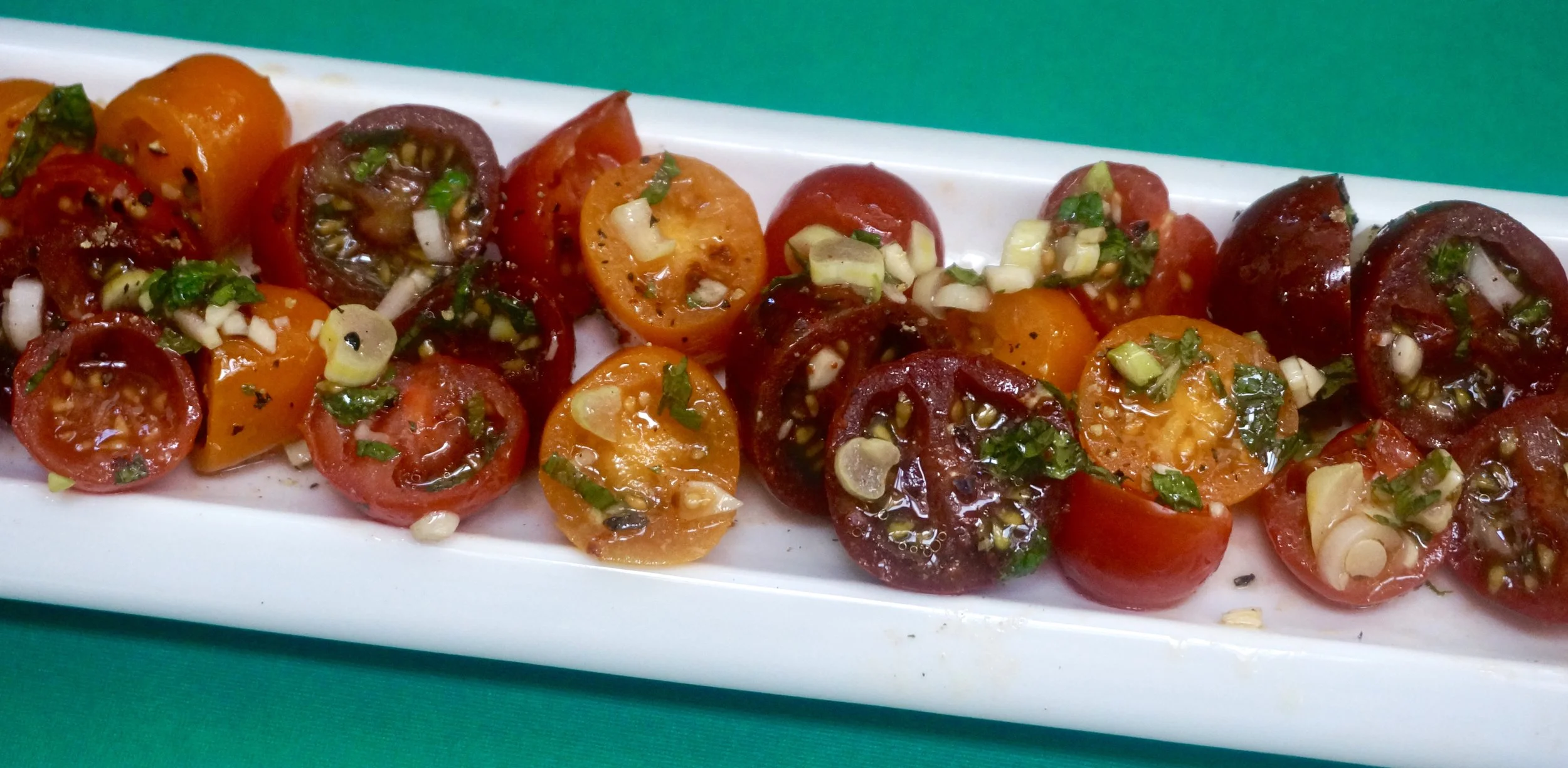 • 4 cups halved mixed cherry or grape tomatoes, or cut up regular tomatoes